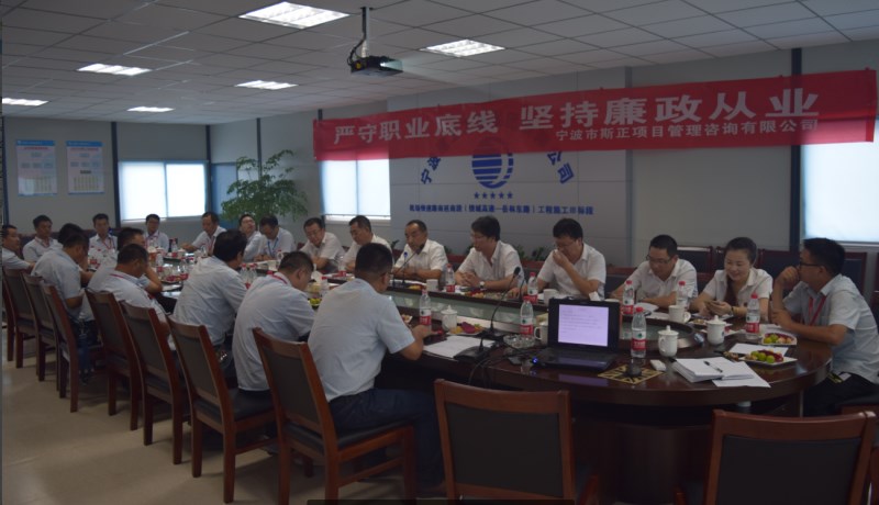 為加強(qiáng)企業(yè)廉潔自律工作,促進(jìn)企業(yè)發(fā)展,2017年9月6日下午在三分公司承擔(dān)監(jiān)理的機(jī)場快速路南延Ⅲ標(biāo)項(xiàng)目部召開嚴(yán)守職業(yè)底線,堅(jiān)持廉潔自律從業(yè)會(huì)議。寧展集團(tuán)副董事長兼斯正咨詢監(jiān)理公司總經(jīng)理張濤、專職副書記高業(yè)寶、副總經(jīng)理孫啟祥、副總經(jīng)理兼總工程師周堅(jiān)梁、副總經(jīng)理高錫龍出席本次會(huì)議,總師辦主任史錢芬、副總工程師王斌軍列席會(huì)議。